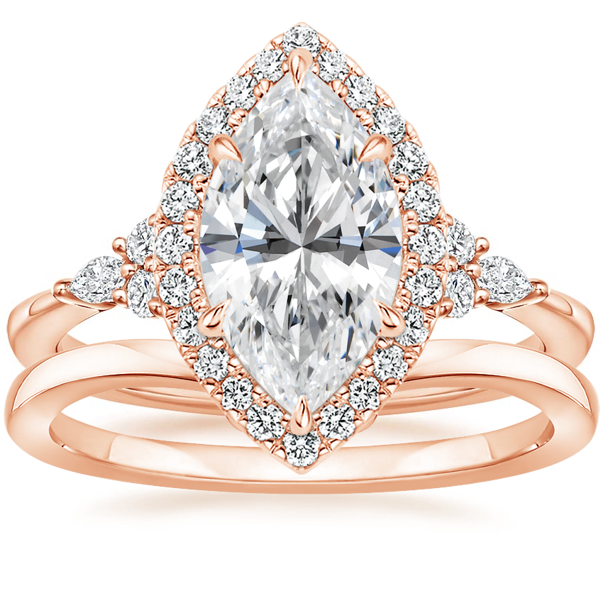 14K Rose Gold Nadia Halo Diamond Ring (1/4 ct. tw.) with Nadia Contoured Diamond Ring