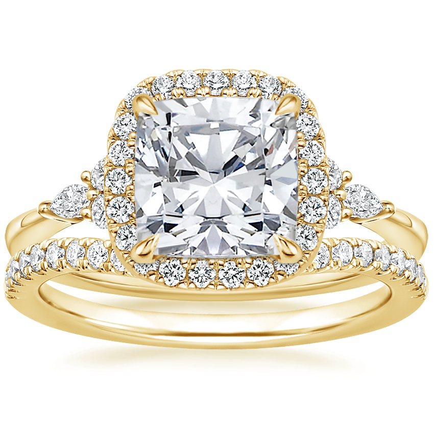 18K Yellow Gold Nadia Halo Diamond Ring with Curved Ballad Diamond Ring (1/6 ct. tw.)