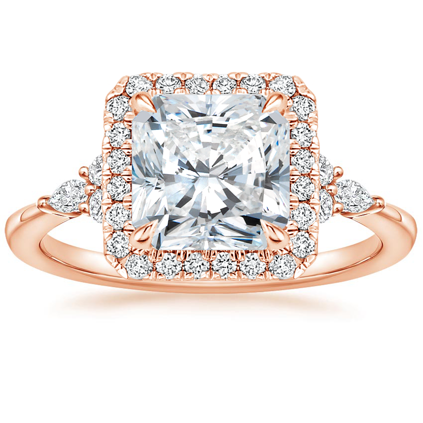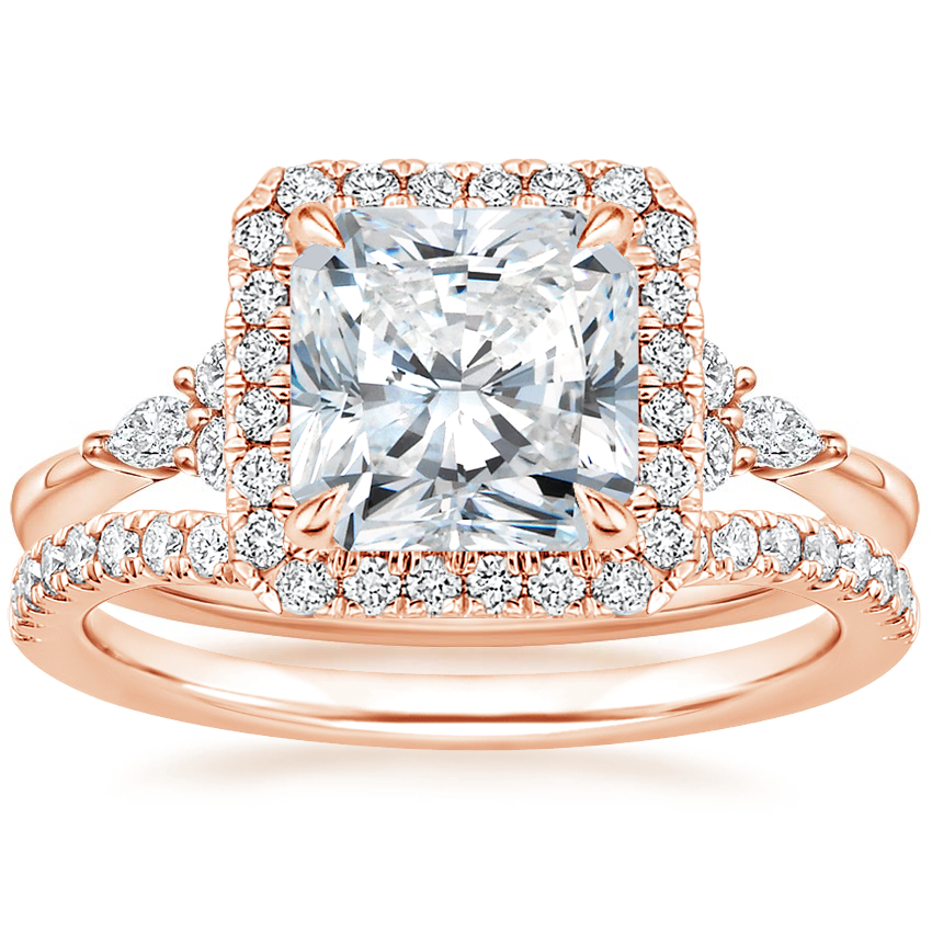14K Rose Gold Nadia Halo Diamond Ring with Curved Ballad Diamond Ring (1/6 ct. tw.)