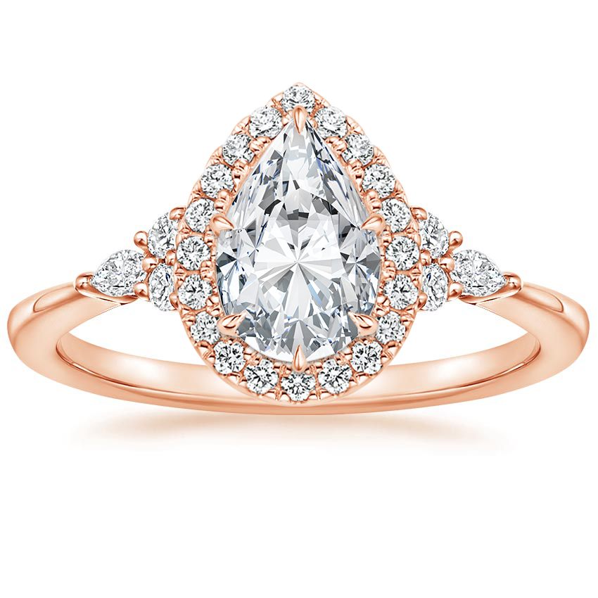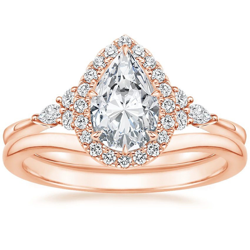 14K Rose Gold Nadia Halo Lab Diamond Ring with Petite Curved Wedding Ring with 0.75 Carat Pear Lab Grown Diamond