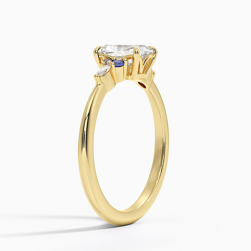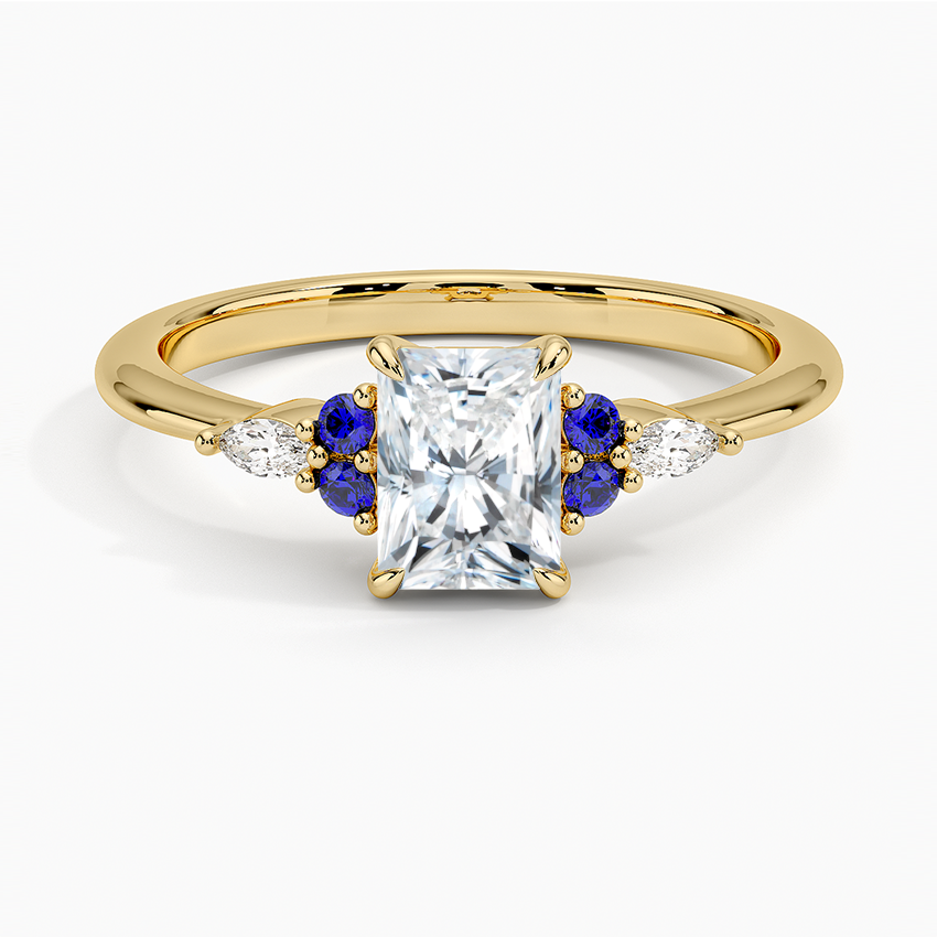 18K Yellow Gold Nadia Sapphire and Diamond Ring with 0.75 Carat Radiant Diamond