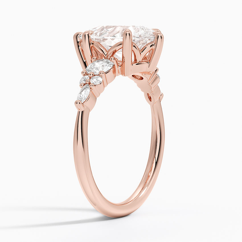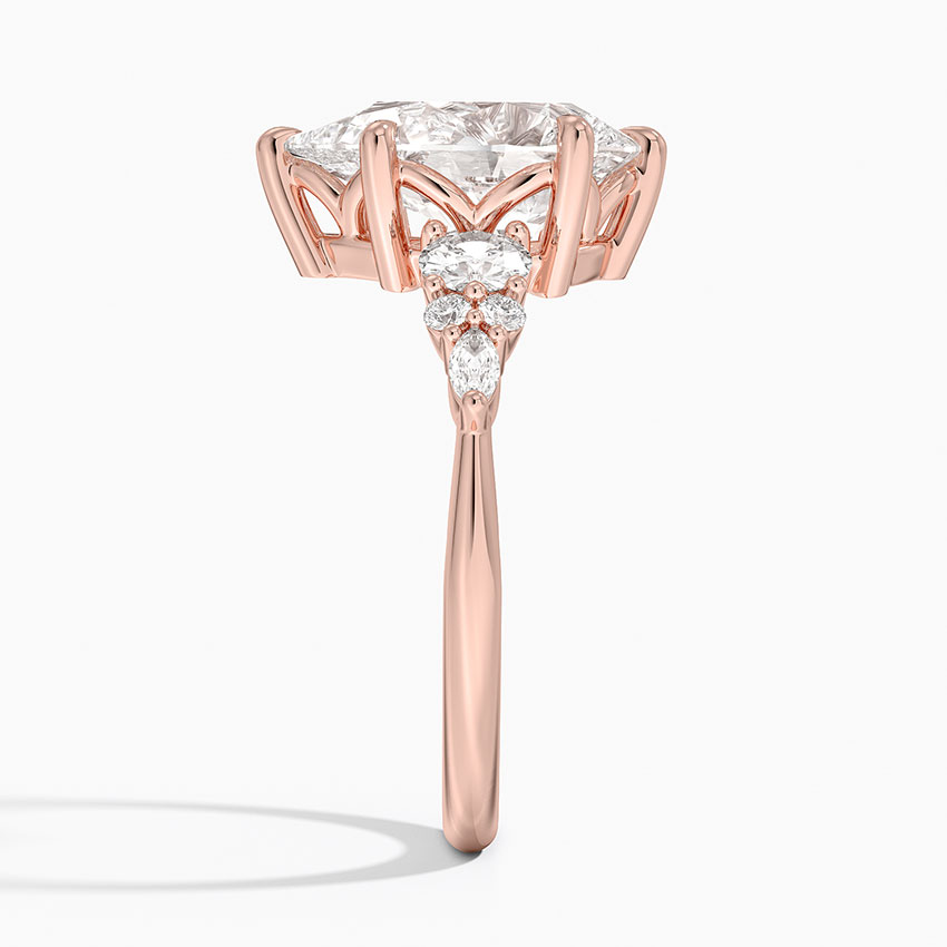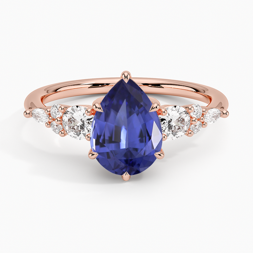 14K Rose Gold Nadia Three Stone Lab Diamond Ring with 10x7mm Light Blue Pear Lab Grown Sapphire