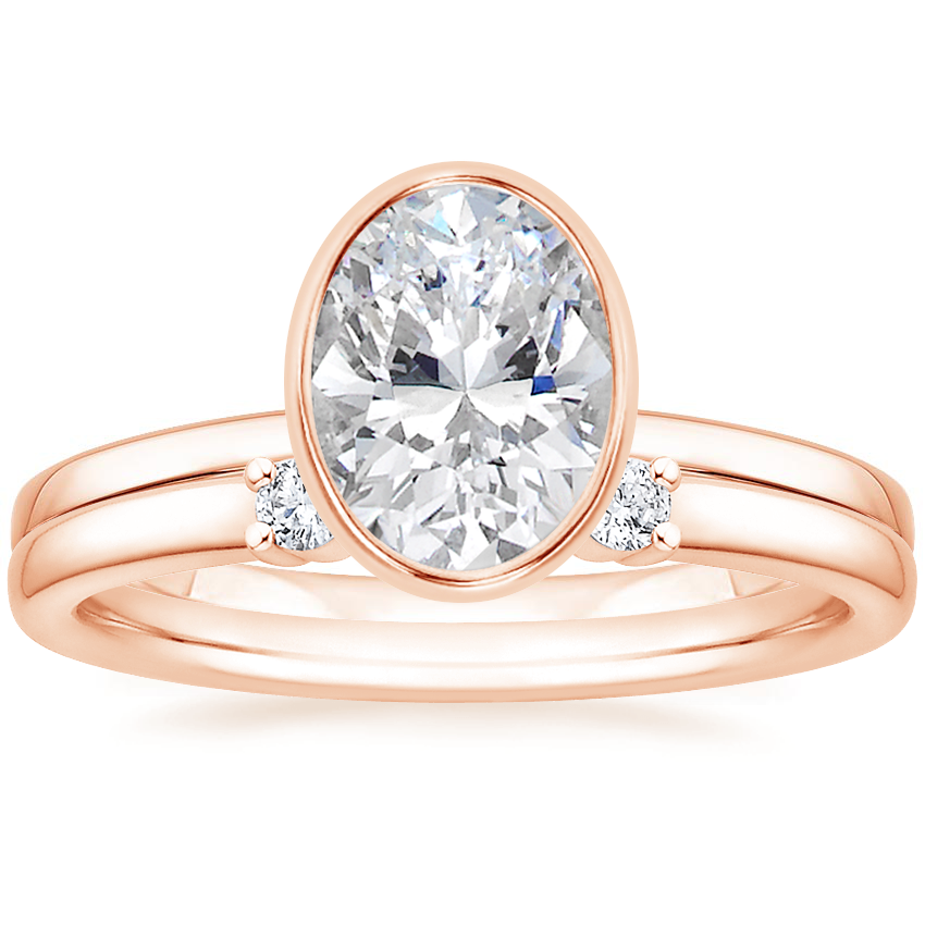I was specifically looking for a bezel set ring because prongs get caught on things is a pet peeve and I wanted my diamond absolutely secure. This setting gave me the bezel with a simple yet elegant gallery that is very similar to a classic gallery because the sides of the diamond are still exposed! I get a stunning view of my diamond while also having a bezel set that keeps it secure and from catching on clothing! Another plus with this design is that the diamond sits high (it may seem too high at first but you get used to it) and therefore, your wedding band will mostly likely sit flush (depending on which band you choose). I chose a channeled double row pave from another maker and the way it pairs with this E-ring is perfection and everything I wanted. For reference my diamond specs are: 0.95ct Oval, E, VVS1. It sparkles beautifully :)