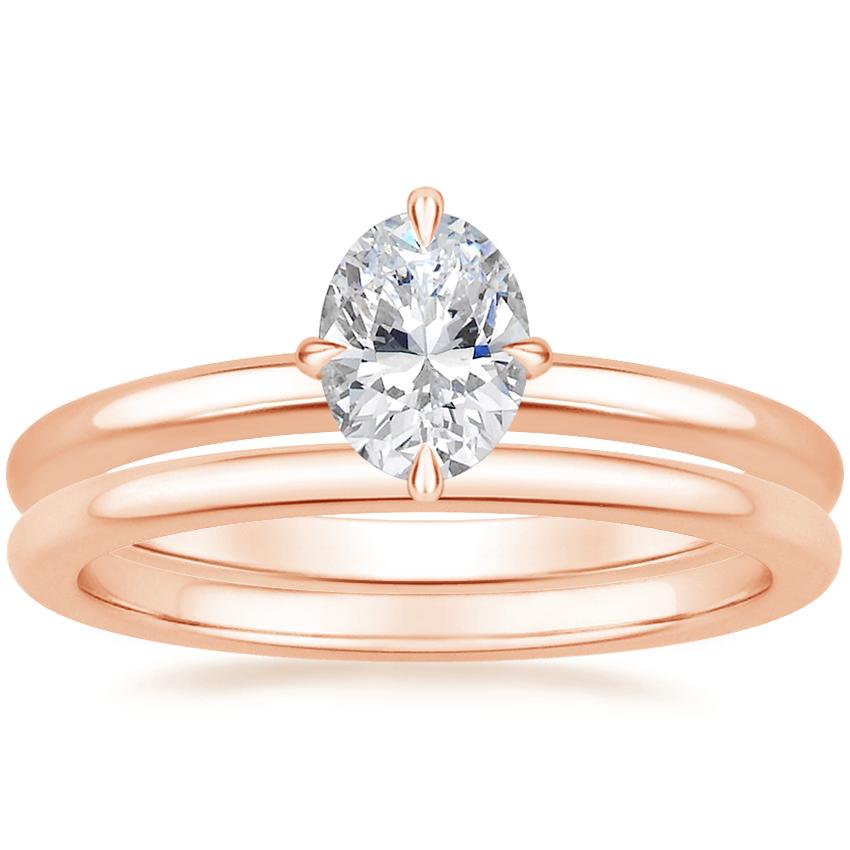 14K Rose Gold North Star Ring with Petite Comfort Fit Wedding Ring with 0.86 Carat Oval Lab Grown Diamond