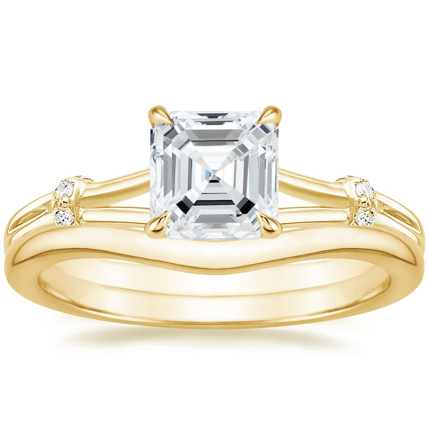 18K Yellow Gold Odelia Diamond Ring with Petite Curved Wedding Ring