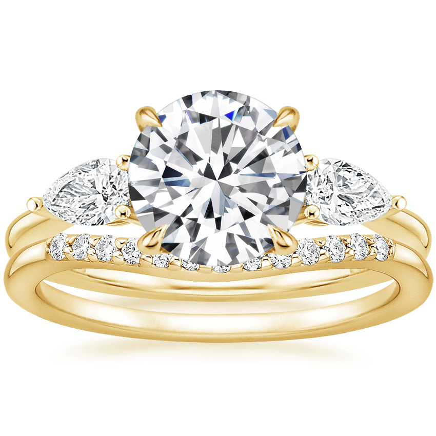 18K Yellow Gold Opera Diamond Ring with Petite Curved Diamond Ring (1/10 ct. tw.)