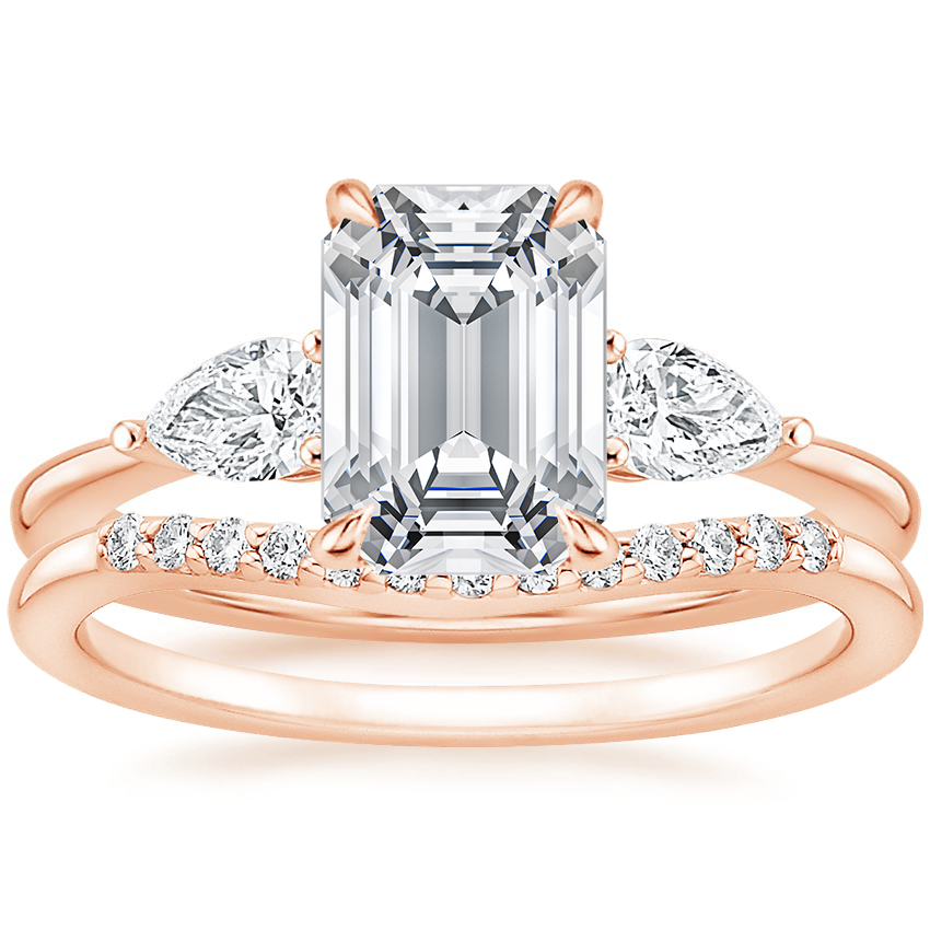 14K Rose Gold Opera Diamond Ring with Petite Curved Diamond Ring (1/10 ct. tw.)