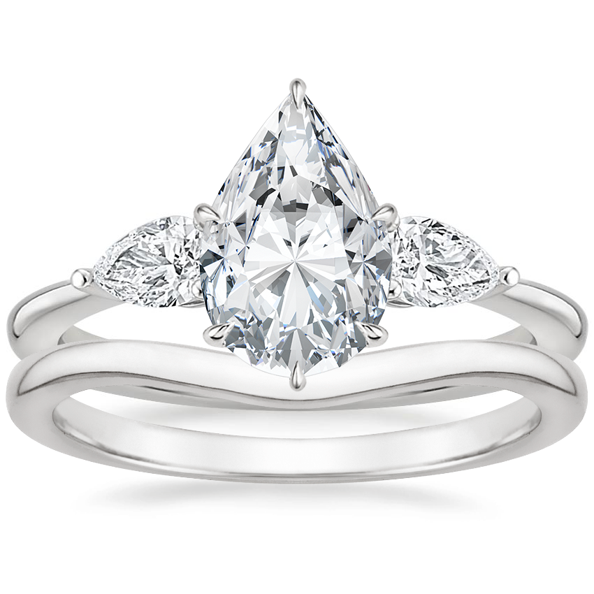 18K White Gold Opera Diamond Ring with Petite Curved Wedding Ring