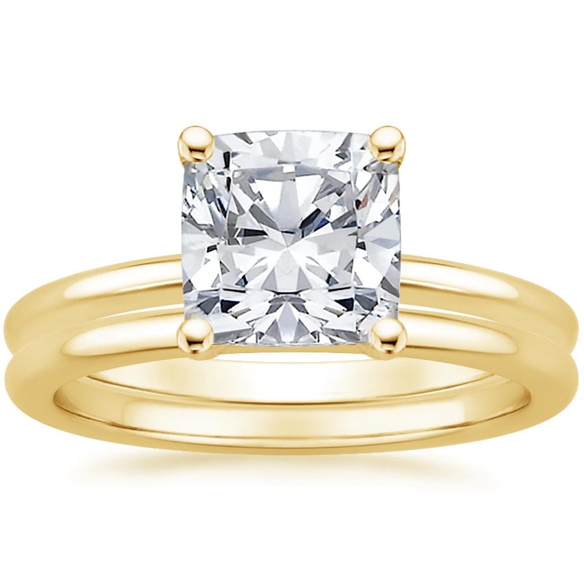 18K Yellow Gold Perfect Fit Bridal Set with 2.99 Carat Cushion Lab Grown Diamond