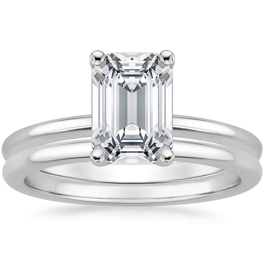 This elegant solitaire bridal set features a raised gallery that allows the wedding band to sit flush for a perfect fit. The petite bands add to the sleek, classic look of this ring. ... Read More