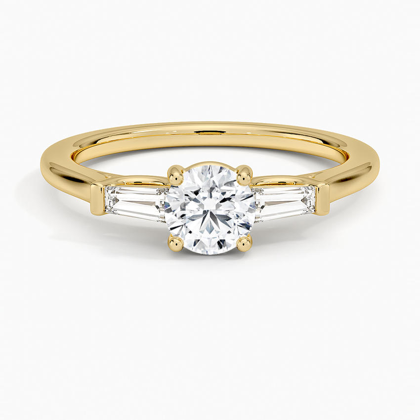 18K Yellow Gold Perfect Fit Tapered Baguette Lab Diamond Ring with 0.5 Carat Round Lab Grown Diamond