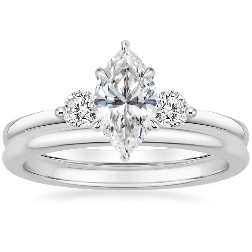 18K White Gold Perfect Fit Three Stone Diamond Ring with Petite Comfort Fit Wedding Ring