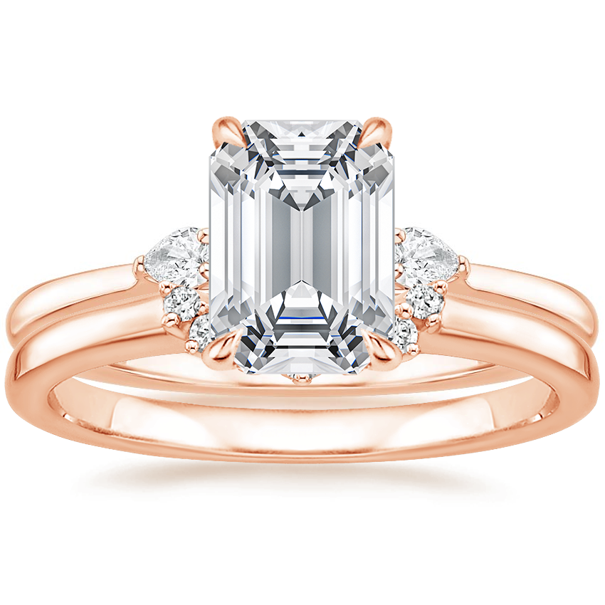 14K Rose Gold Perfect Fit Three Stone Pear Diamond Ring with Crescent Diamond Ring with 1.51 Carat Emerald Diamond