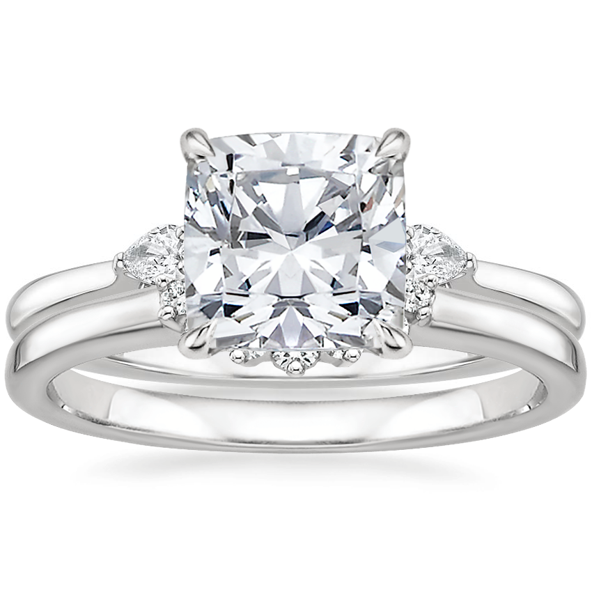 This setting is gorgeous, comfortable, classy, and unique. When first looking at engagement rings, I was interested in a solitaire oval. Then I discovered this setting and loved how the pear accent diamonds add character while still having the center stone shine. The profile is beautiful too. Thank you to Laura and Jasmine for helping us at our BE appointments; I highly recommend visiting a showroom to confirm what you love (3 times the charm for us). Will go back for our wedding bands! Details: yellow gold, lab oval diamond, 1.3 carat, super ideal cut (prioritize this for sparkle), VVS2 clarity, 1.45 LW ratio (chose this for a more elongated oval shape), ring size 4.75
