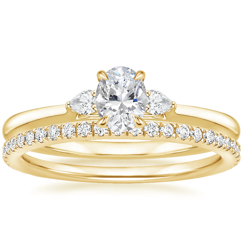 Perfect Fit Three Stone Pear Diamond Ring with Luxe Ballad Diamond Ring in 18K Yellow Gold