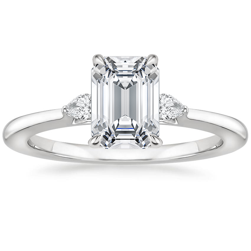 18K White Gold Perfect Fit Three Stone Pear Diamond Ring with Luxe Ballad Diamond Ring with 0.5 Carat Emerald Diamond