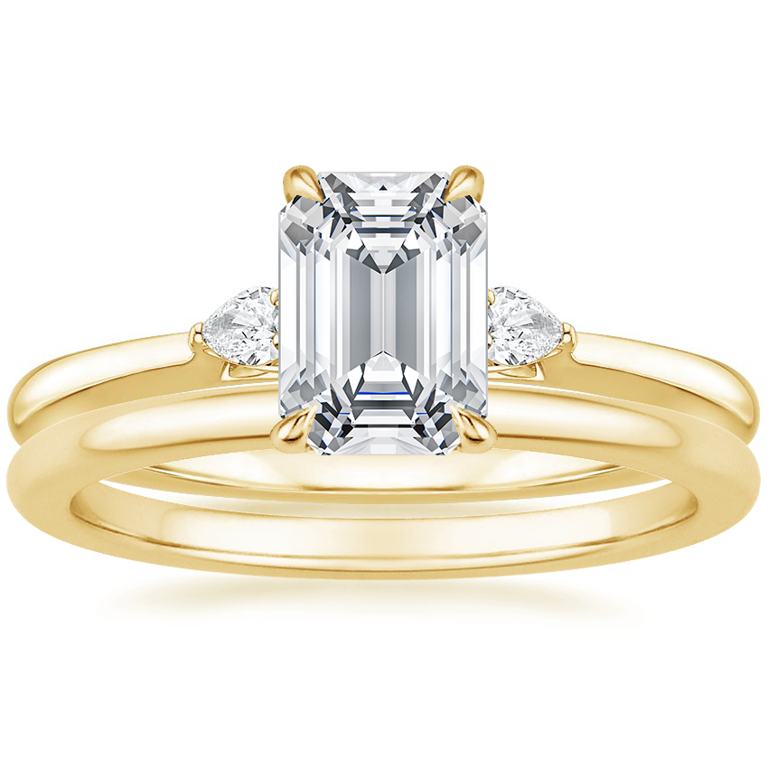 18K Yellow Gold Perfect Fit Three Stone Pear Lab Diamond Ring with Petite Comfort Fit Wedding Ring with 0.75 Carat Emerald Lab Grown Diamond