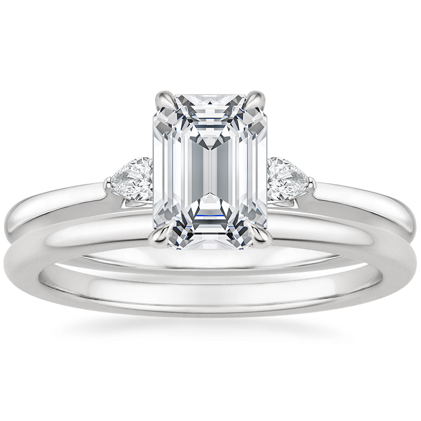 Platinum Perfect Fit Three Stone Pear Lab Diamond Ring with Petite Comfort Fit Wedding Ring with 0.75 Carat Emerald Lab Grown Diamond