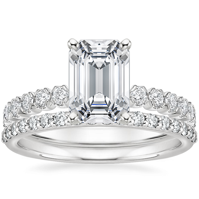 18K White Gold Peri Diamond Ring (1/3 ct. tw.) with Petite Shared Prong Diamond Ring (1/4 ct. tw.)