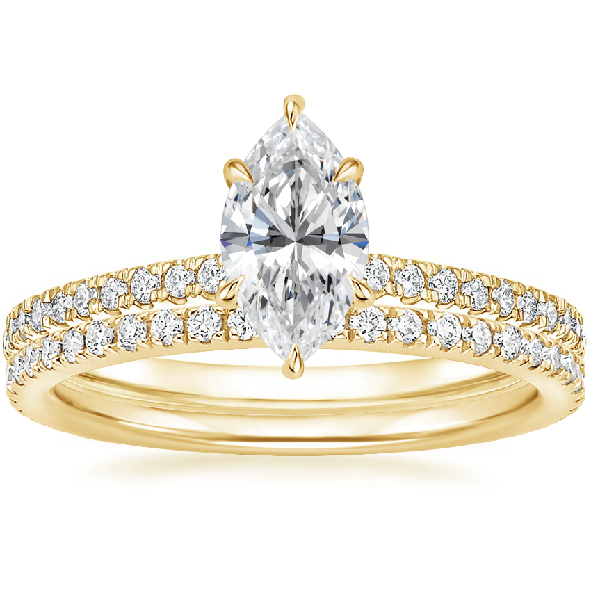 14K Yellow Gold Petite Demi Diamond Ring (1/5 ct. tw.) with Luxe Ballad Diamond Ring (1/4 ct. tw.)