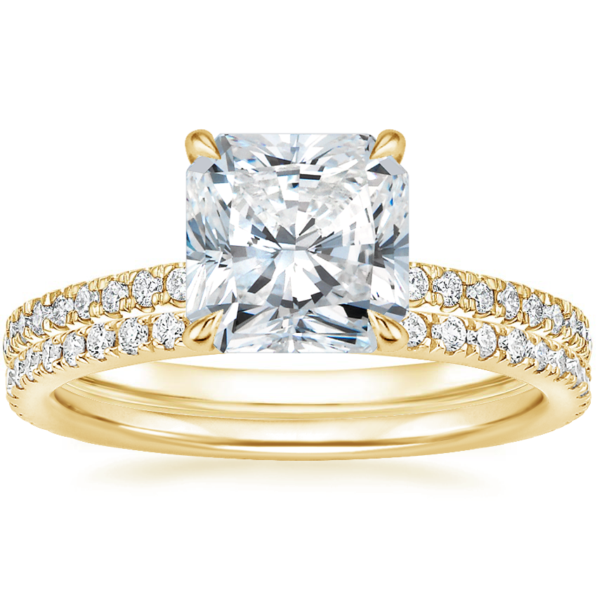 18K Yellow Gold Petite Demi Diamond Ring (1/5 ct. tw.) with Luxe Ballad Diamond Ring (1/4 ct. tw.)