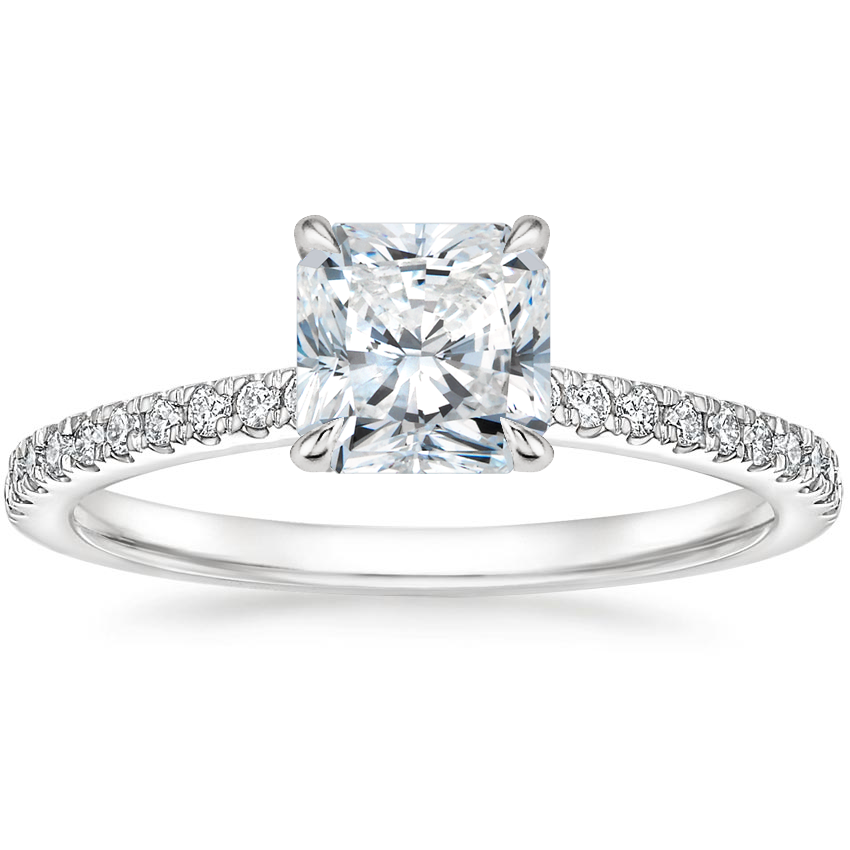 Platinum Petite Demi Lab Diamond Ring (1/5 ct. tw.) with Luxe Sia Diamond Ring (1/5 ct. tw.) with 0.75 Carat Radiant Lab Grown Diamond