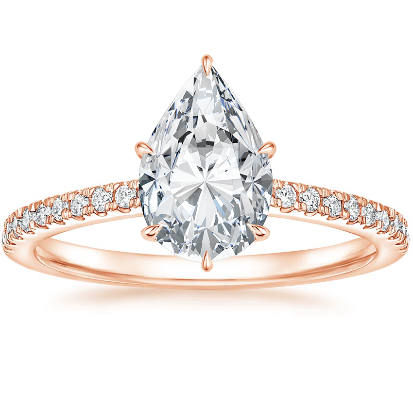 14K Rose Gold Petite Demi Diamond Ring with Ballad Diamond Ring with 2.01 Carat Pear Diamond
