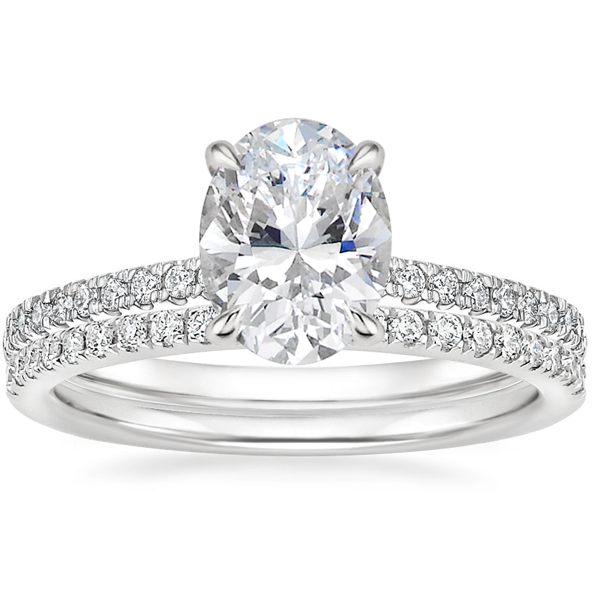 Petite Demi Diamond Ring with Ballad Diamond Ring in 18K White Gold