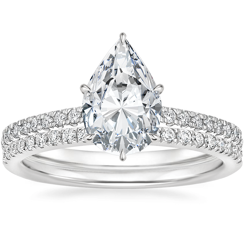 18K White Gold Petite Demi Diamond Ring with Ballad Diamond Ring with 2.01 Carat Pear Diamond