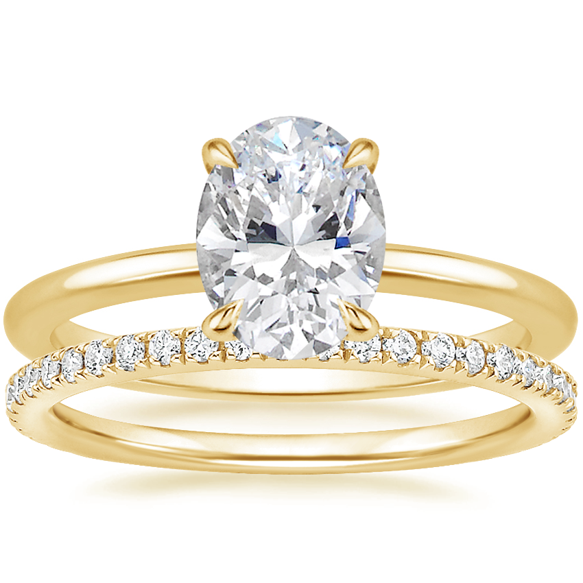 My boyfriend chose the Petite Elodie with a 1.23ct oval diamond. It is exactly what I wanted, a dainty band that highlights the beauty of the diamond. I can't stop staring at my ring!!