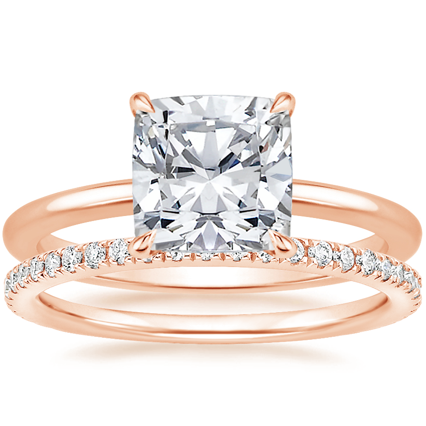 14K Rose Gold Petite Elodie Ring with Luxe Ballad Diamond Ring with 7.44 Carat Cushion Lab Grown Diamond