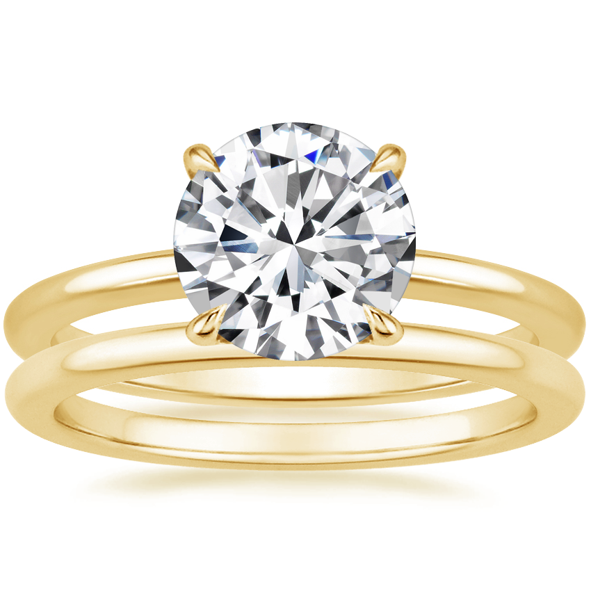 18K Yellow Gold Petite Elodie Ring with Petite Comfort Fit Wedding Ring
