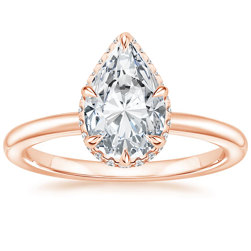 I love this ring! I have a 1.27 carat pear diamond, h color, ideal cut, vvs1 clarity and in the platinum setting. It's absolutely stunning! It is a high setting with a double halo that makes the diamond pop, and any wedding band will sit flush. I get some many compliments.