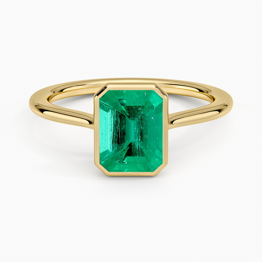 18K Yellow Gold Petite Luna 1.5mm Bezel Ring with 7.9x6.5mm Colombian Emerald