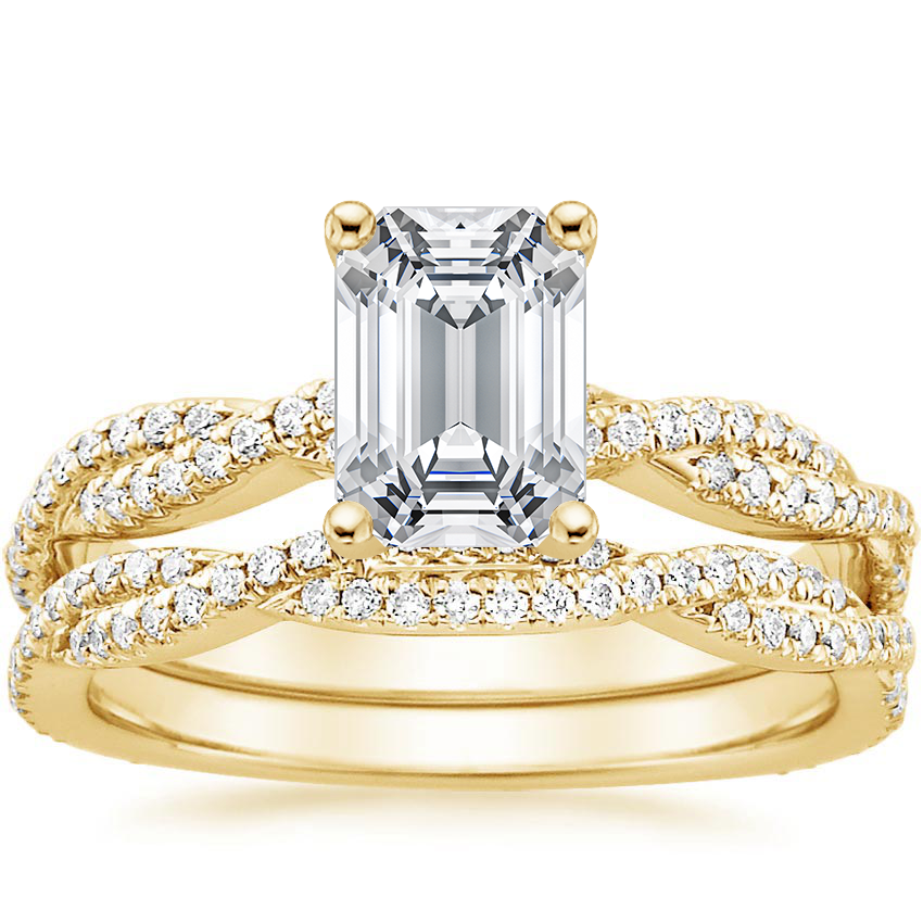 18K Yellow Gold Petite Luxe Twisted Vine Bridal Set (1/2 ct. tw.) with 1.5 Carat Emerald Diamond