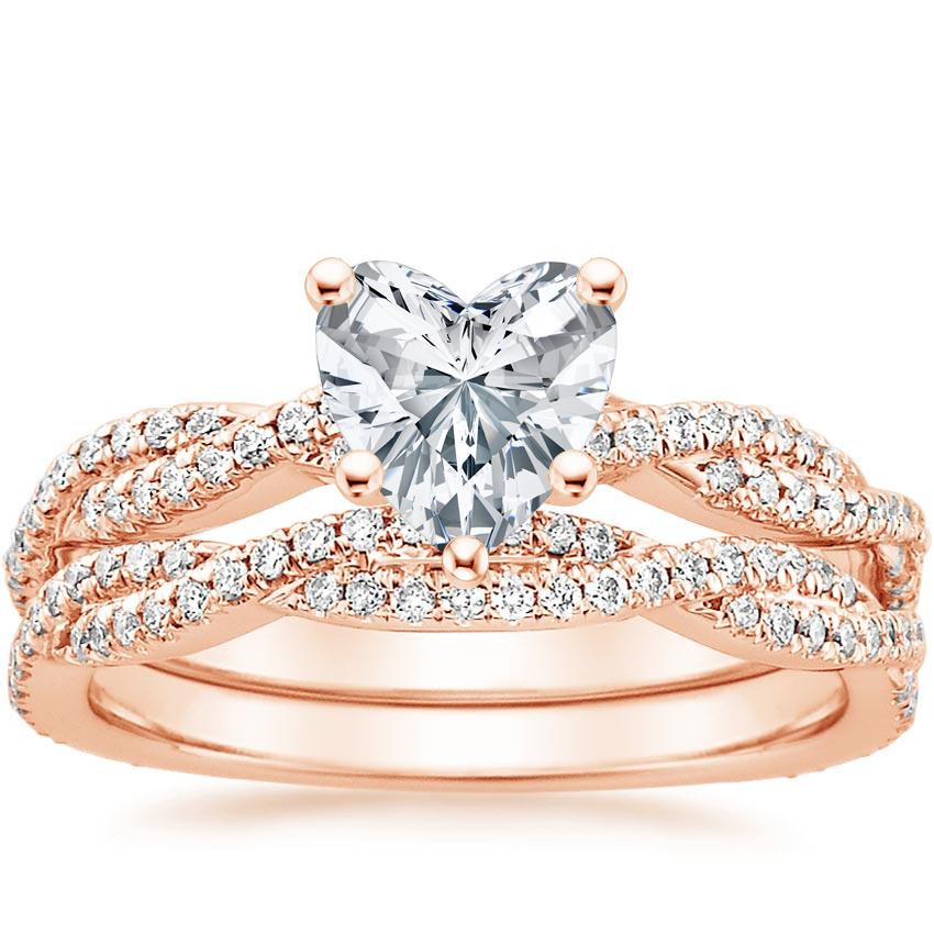 14K Rose Gold Petite Luxe Twisted Vine Bridal Set (1/2 ct. tw.) with 1.24 Carat Heart Lab Grown Diamond