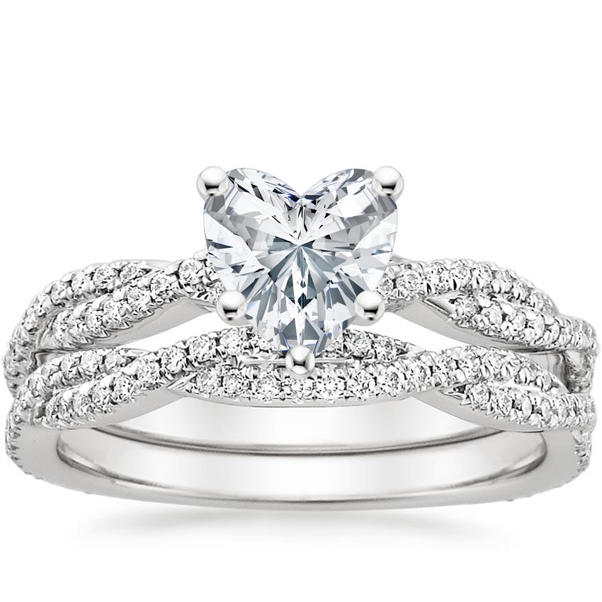 18K White Gold Petite Luxe Twisted Vine Bridal Set (1/2 ct. tw.) with 1.24 Carat Heart Lab Grown Diamond