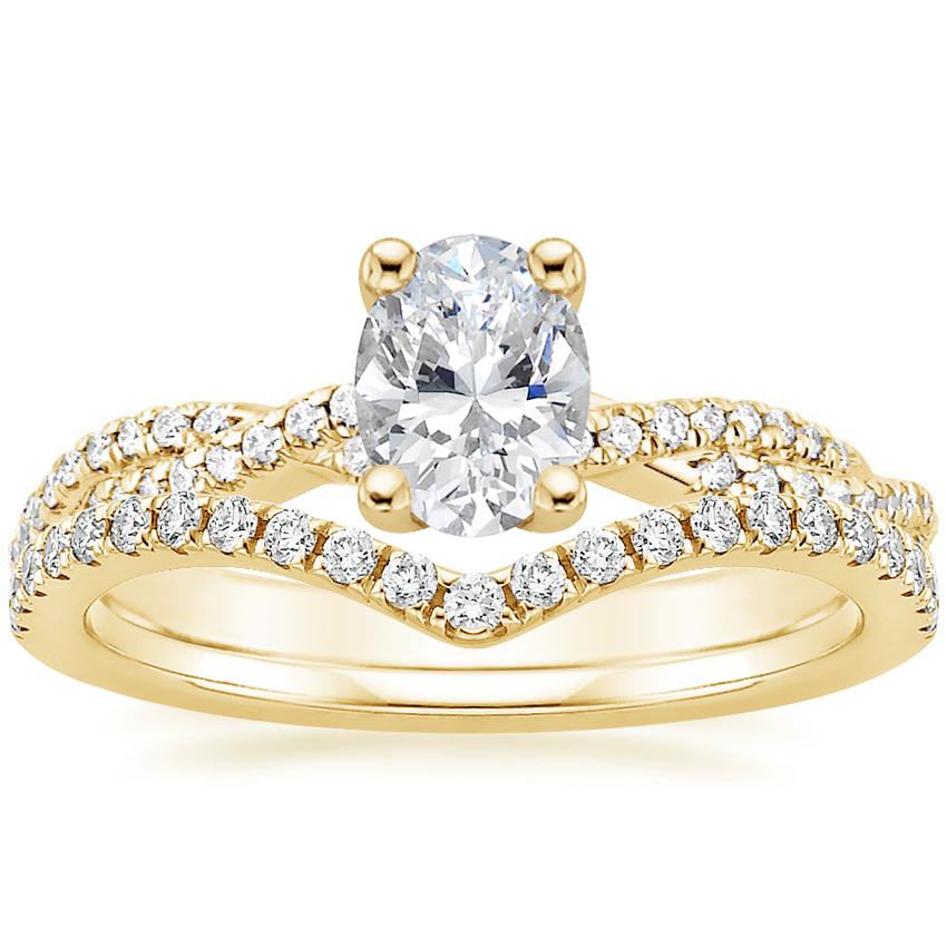18K Yellow Gold Petite Luxe Twisted Vine Diamond Ring (1/4 ct. tw.) with Flair Diamond Ring (1/6 ct. tw.)