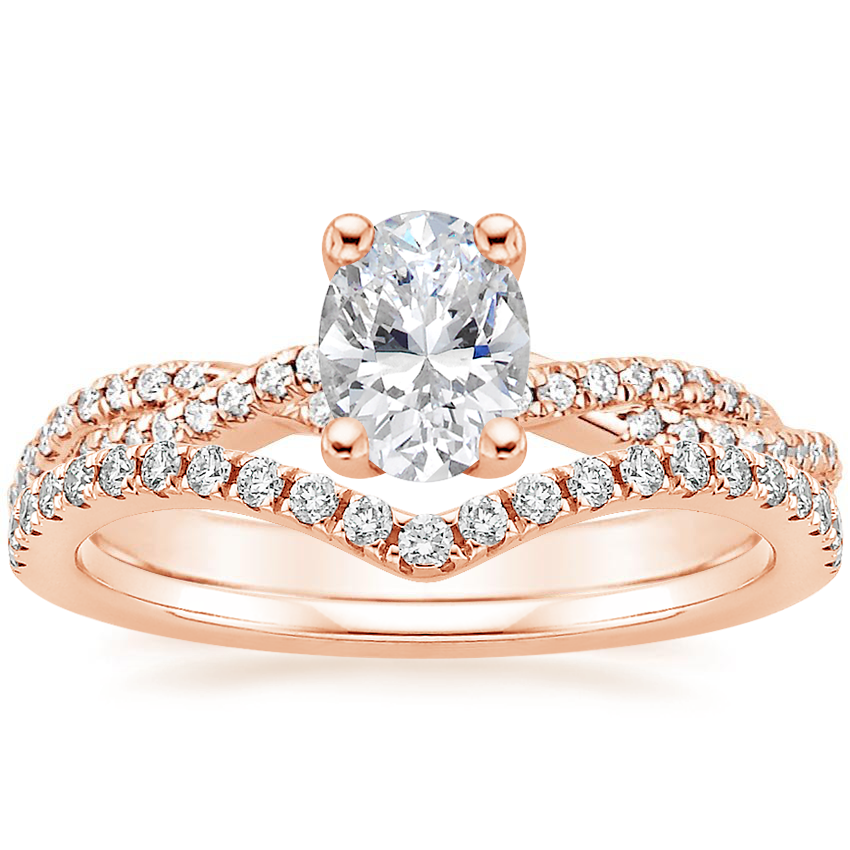 14K Rose Gold Petite Luxe Twisted Vine Diamond Ring (1/4 ct. tw.) with Flair Diamond Ring (1/6 ct. tw.)