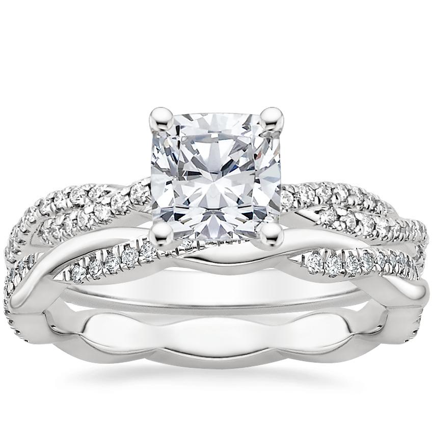 18K White Gold Petite Luxe Twisted Vine Diamond Ring (1/4 ct. tw.) with Petite Twisted Vine Eternity Diamond Ring (1/5 ct. tw.)