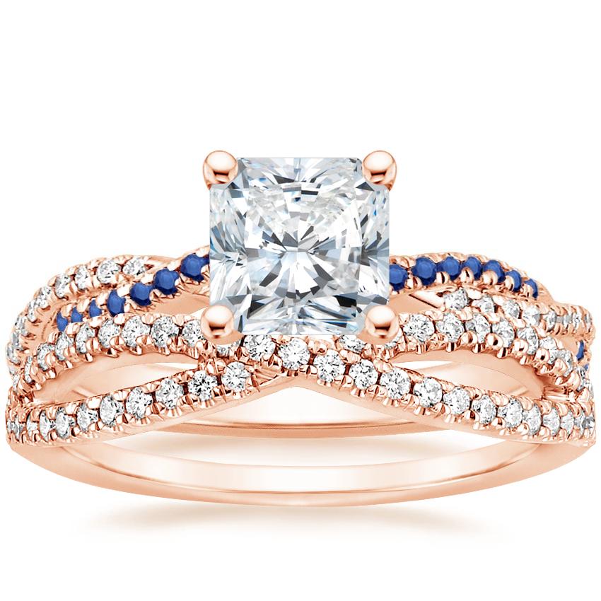 14K Rose Gold Petite Luxe Twisted Vine Sapphire and Diamond Ring with Entwined Diamond Ring (1/4 ct. tw.)
