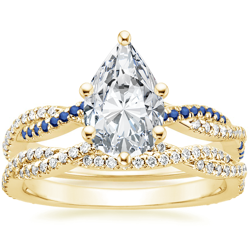 Petite Luxe Twisted Vine Sapphire and Diamond Ring with Petite Luxe Twisted Vine Diamond Ring (1/3 ct. tw.) in 18K Yellow Gold