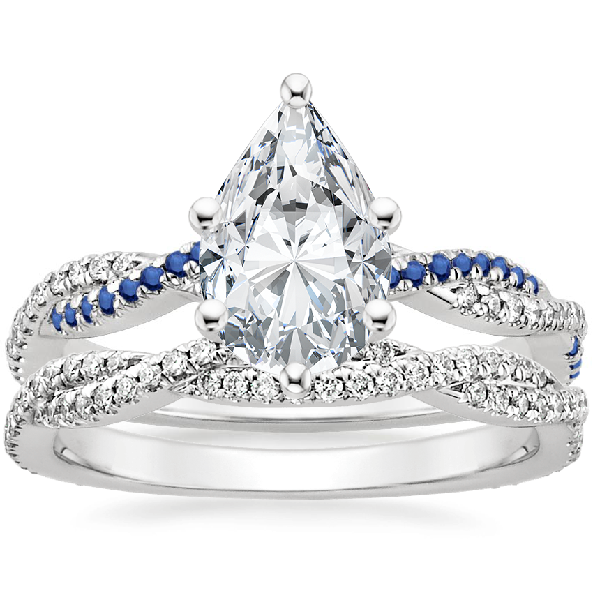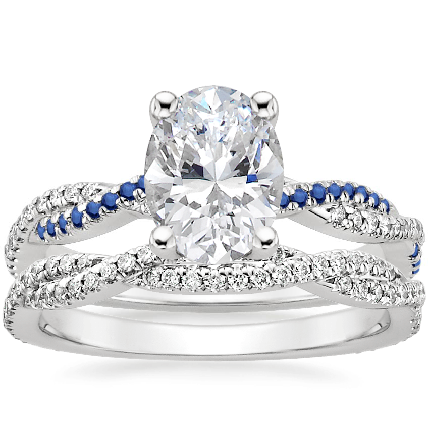 Petite Luxe Twisted Vine Sapphire and Diamond Ring with Petite Luxe Twisted Vine Diamond Ring (1/3 ct. tw.) in Platinum