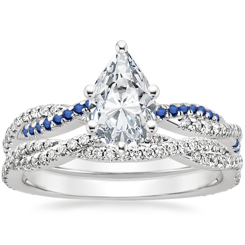 18K White Gold Petite Luxe Twisted Vine Sapphire and Diamond Ring with Petite Luxe Twisted Vine Diamond Ring (1/3 ct. tw.)