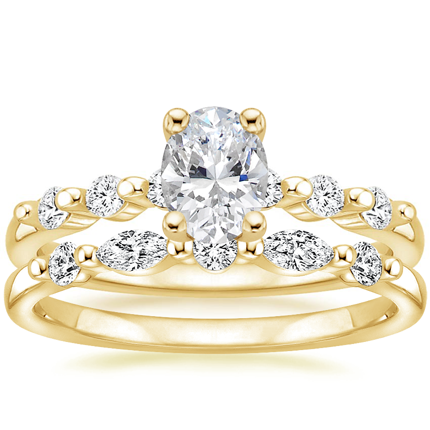 18K Yellow Gold Petite Marseille Diamond Ring (1/6 ct. tw.) with Petite Versailles Diamond Ring (1/5 ct. tw.)