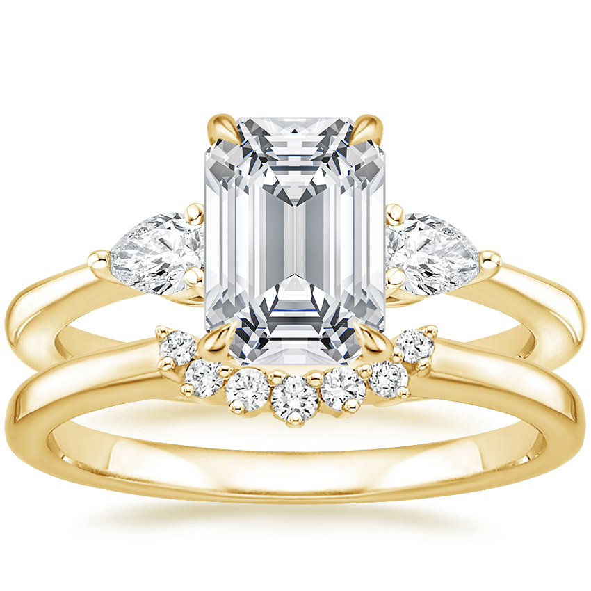 Petite Opera Diamond Ring (1/4 ct. tw.) with Crescent Diamond Ring in 18K Yellow Gold