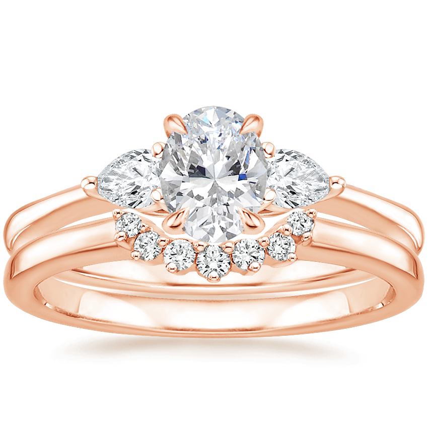 Petite Opera Diamond Ring (1/4 ct. tw.) with Crescent Diamond Ring in 14K Rose Gold
