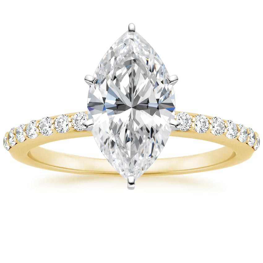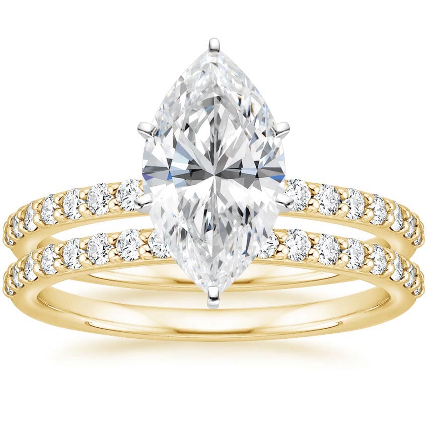 18K Yellow Gold Petite Shared Prong Bridal Set (1/2 ct. tw.) with 1.01 Carat Marquise Diamond