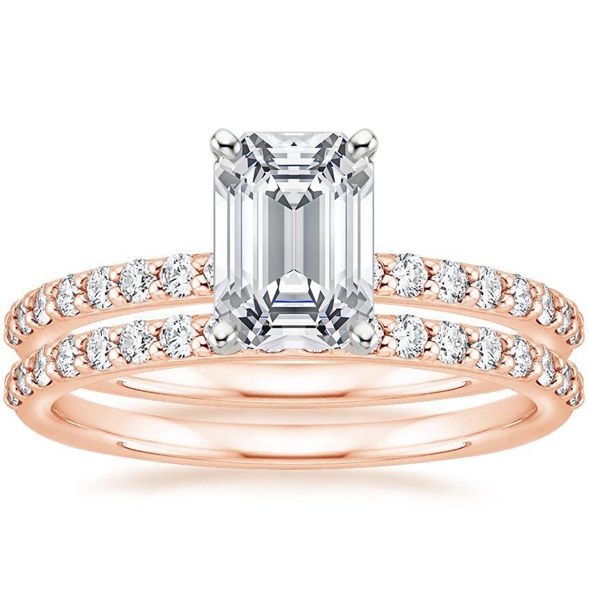 14K Rose Gold Petite Shared Prong Bridal Set (1/2 ct. tw.) with 0.31 Carat Emerald Diamond