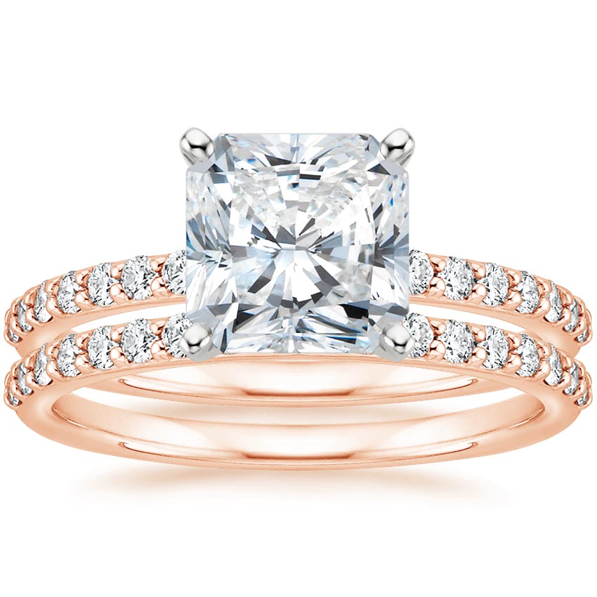 14K Rose Gold Petite Shared Prong Bridal Set (1/2 ct. tw.) with 2.07 Carat Radiant Lab Grown Diamond